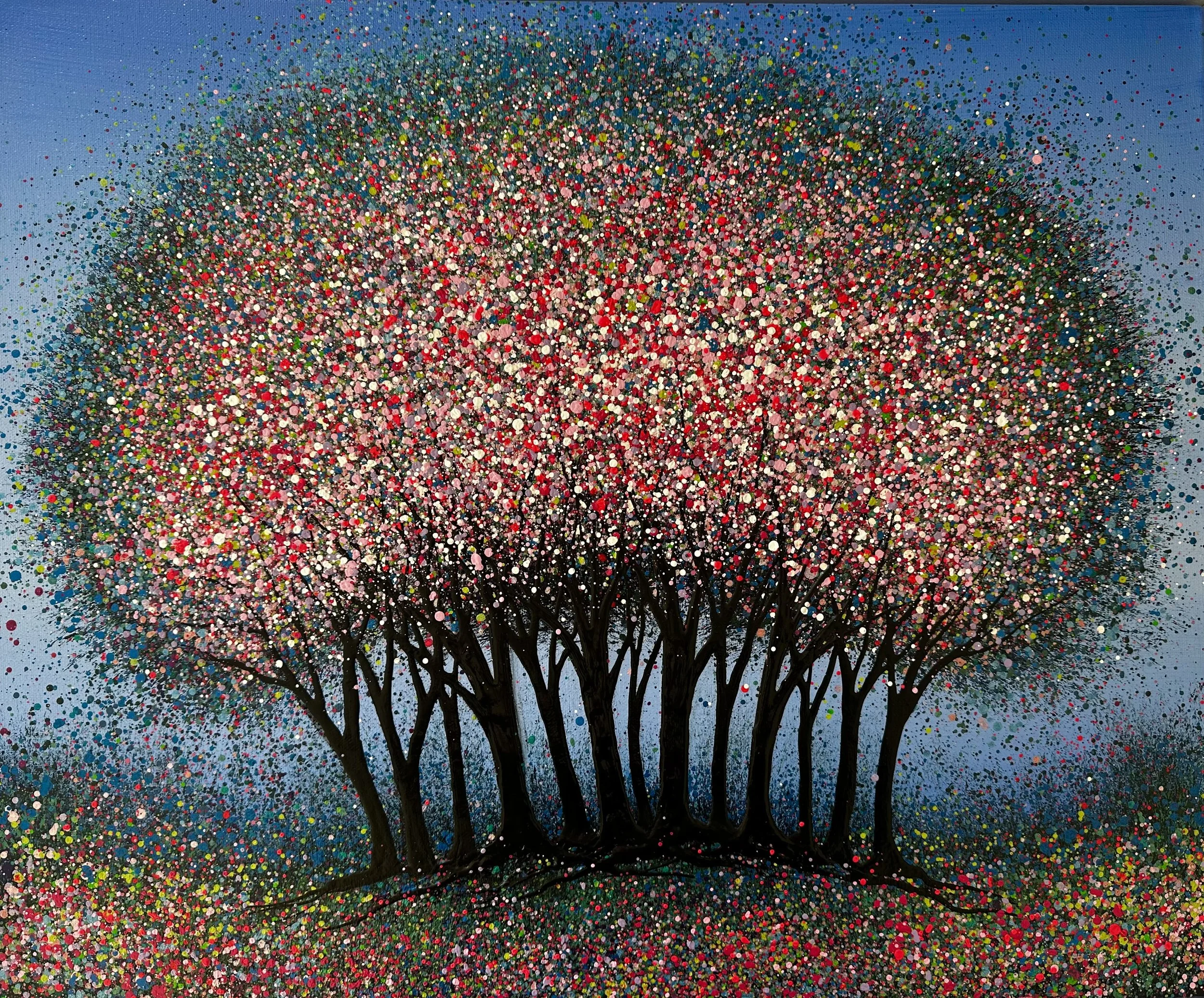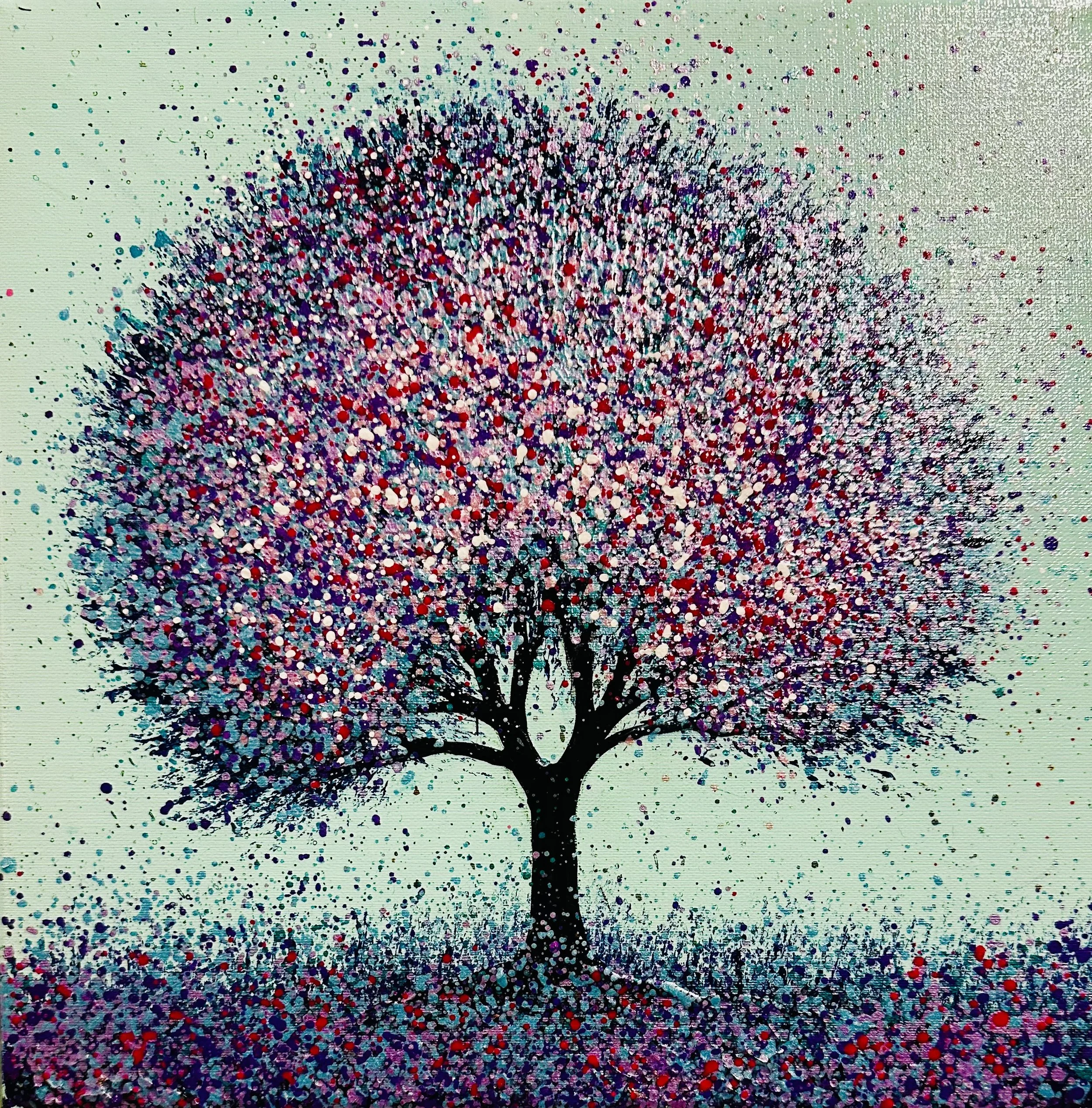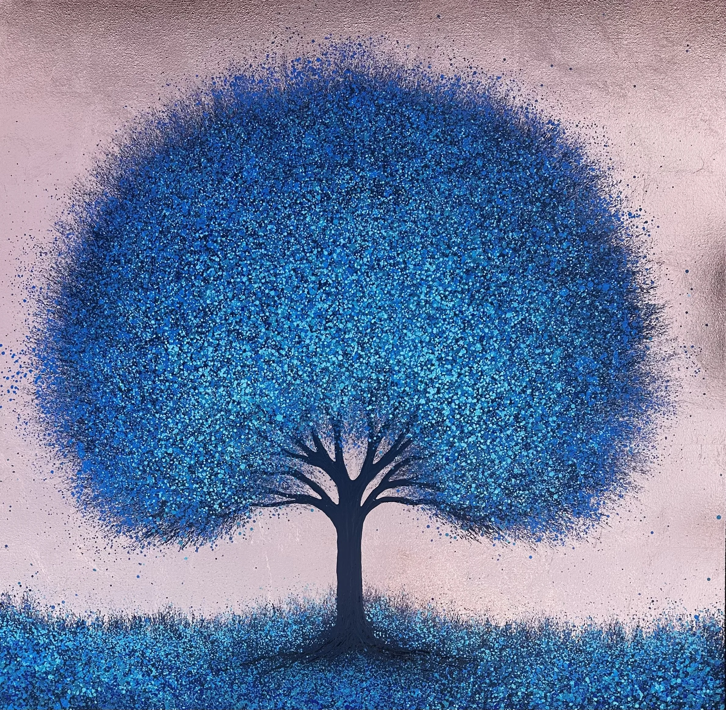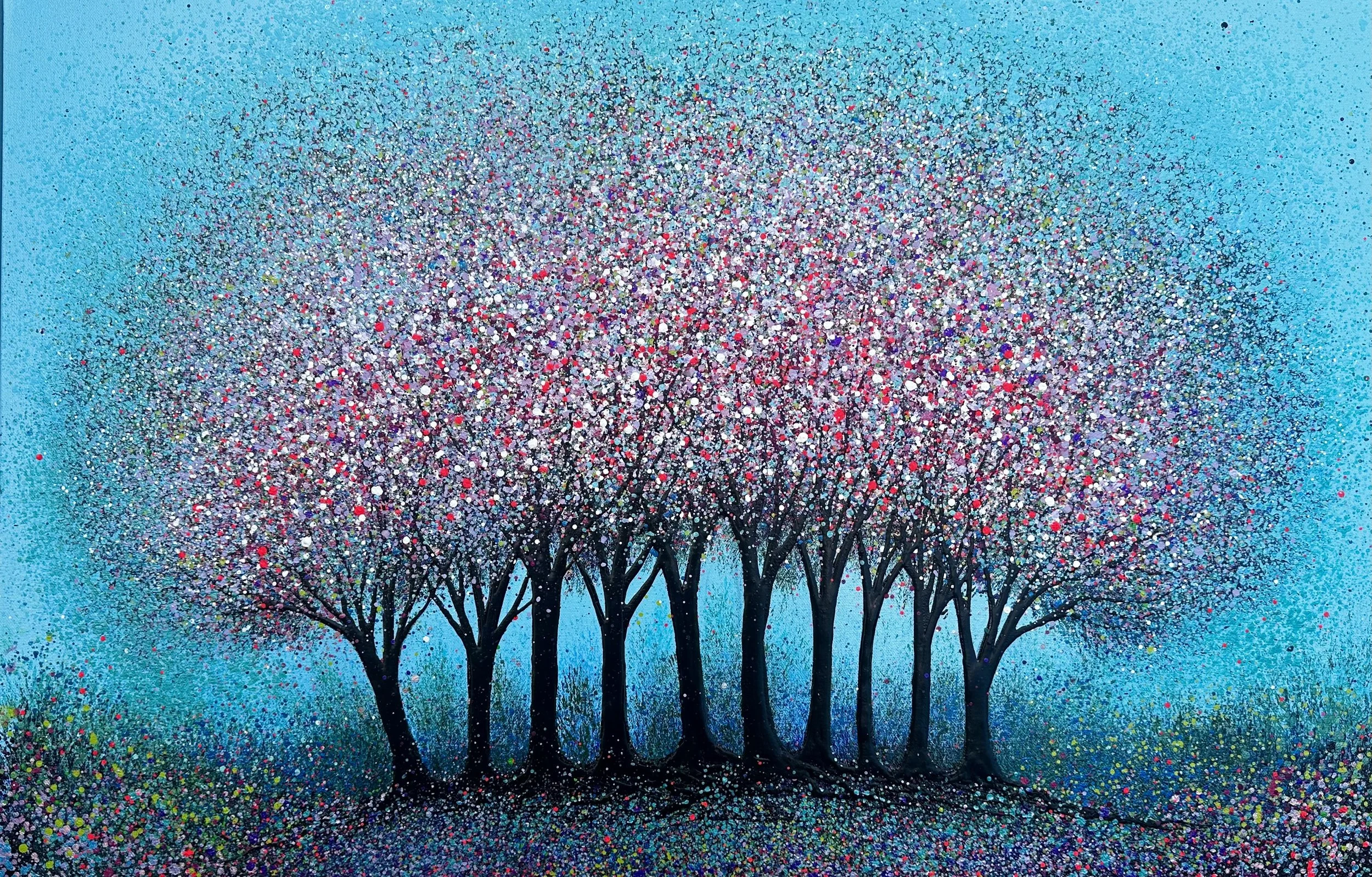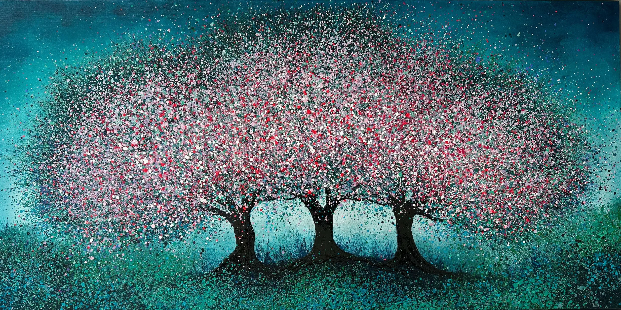 Title: A Spray of pinks and blues on Turquoise (Richmond Park trees)