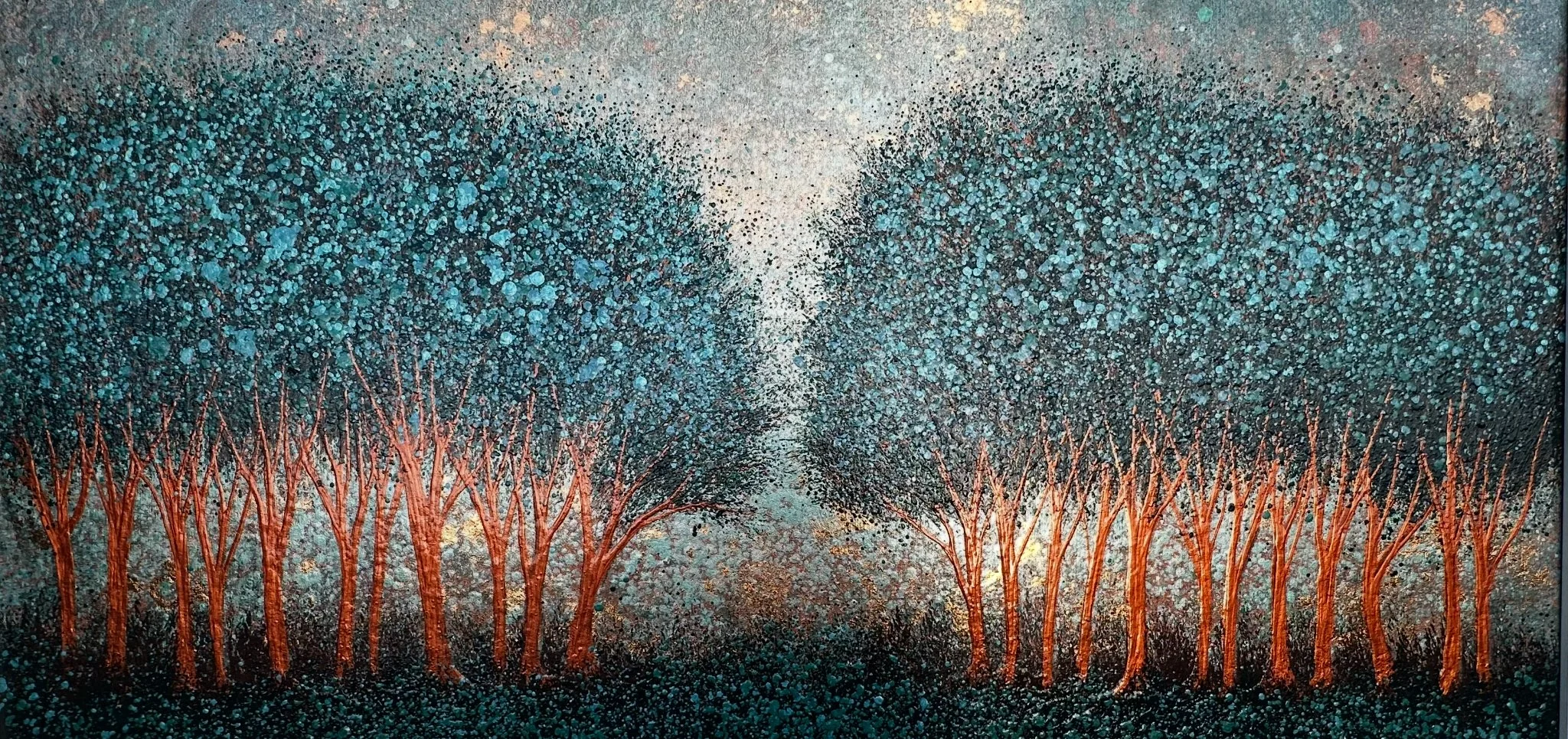 Medium: Layered acrylic on metal copper leaf.